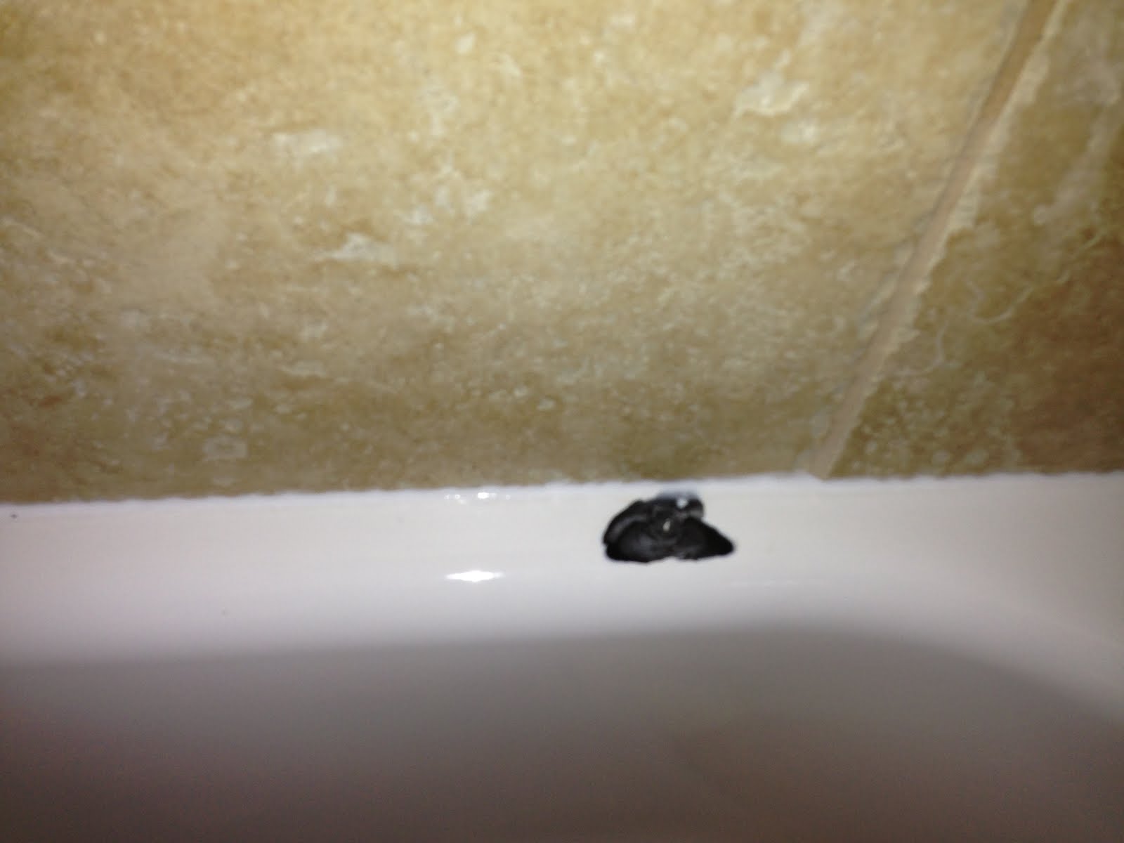 This is a giant chip out of the bathtub. The main bathtub. It won't be used much as a bathtub, but it will be the bathroom used by guests. They have since reglazed the tub, but that will not last as long as an original finish. And it's a new house, shouldn't we have a new tub? But to replace the tub would require the removal of quite a bit of tile and reset tile might not look right or match up. Ugh....decisions and no time!!